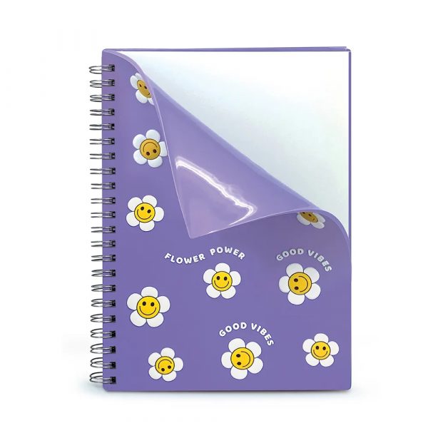 Quaderno spirale a righe con copertina in silicone con elementi in rilievo e portachiavi con mini quaderno.  Formato A5, 80 pagine a righe.